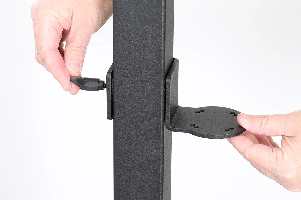 Accessory pole mounting plate for mounting with Pedestal Mounts (not included) with floor stand item no 217210. Suitable for all 50x50 mm square profiles. Used for mounting an additional device/accessory, such as a printer or scanner, allowing you to create a complete, integrated setup. It is also possible to mount multiple plates at the same time for installing several devices or accessories.