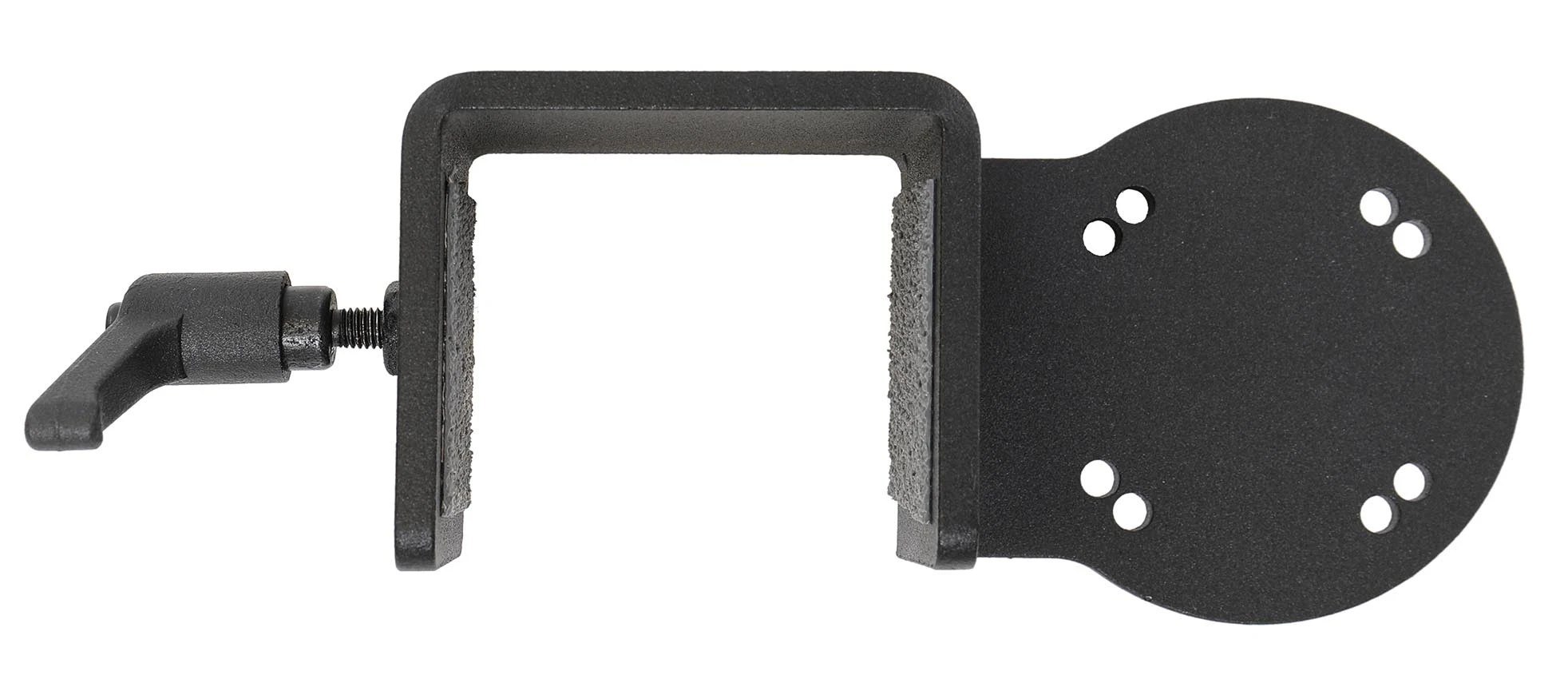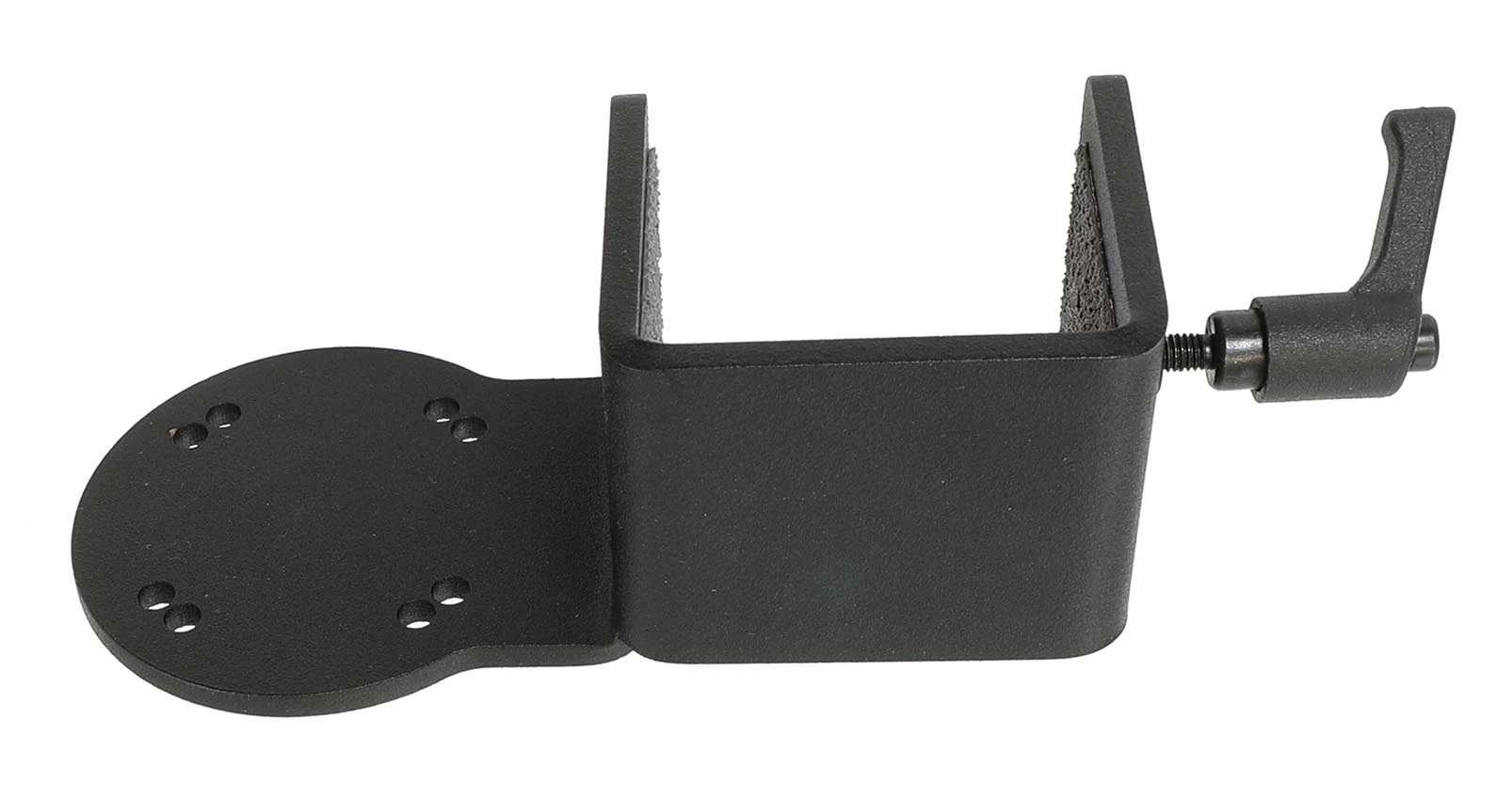 Round mounting plate with 2xAMPS hole pattern for M4 screws. Featuring grip tape to prevent slipping and ensure a firm hold.
