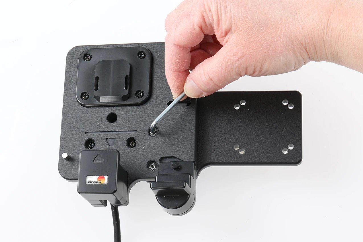 The mounting plate is used together with our ModTek Dock to enable the installation of additional accessories, such as a scanner holder, microphone, or other devices. The plate is attached directly to the ModTek Dock, providing a stable and practical solution for expanding the functionality of your ModTek system.