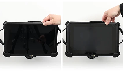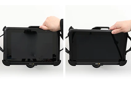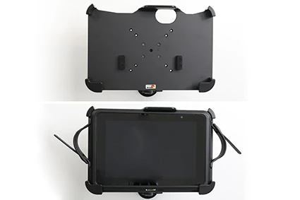 This holder is the perfect choice when you want to have your device within reasy reach. Custom fit for devices with Integrated 1D/2D barcode Scanner. The holder has an extra robust design. Attach the holder to any flat surface or a Pedestal Mount in a truck, distribution vehicle, warehouse etc. Predrilled AMPS and VESA 75/100 standard holes. You have full access to the camera and all buttons and outlets when the device is in the holder.