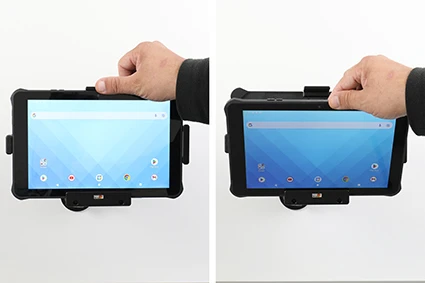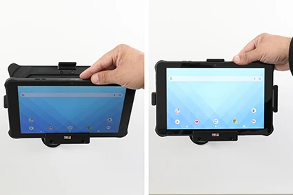 This holder is the perfect choice when you want to have your device firmly in place within easy reach. Custom fit for devices with and without expansion handstrap. The holder is made of extra strong plastic. Attach the holder to any flat surface or a Pedestal Mount in a truck, distribution vehicle, warehouse etc. Predrilled AMPS and VESA standard holes. You have full access to the camera and all buttons and outlets when the device is in the holder.