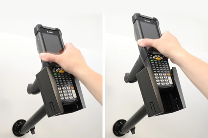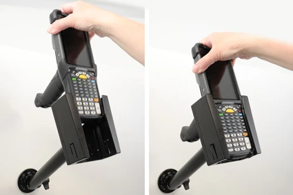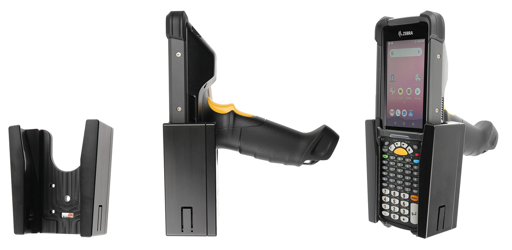 A robust mount for every day professional use in tough environments. Your device is held firmly in place within easy reach, providing a better and safer working environment. Fits all versions of the device with pistol grip.