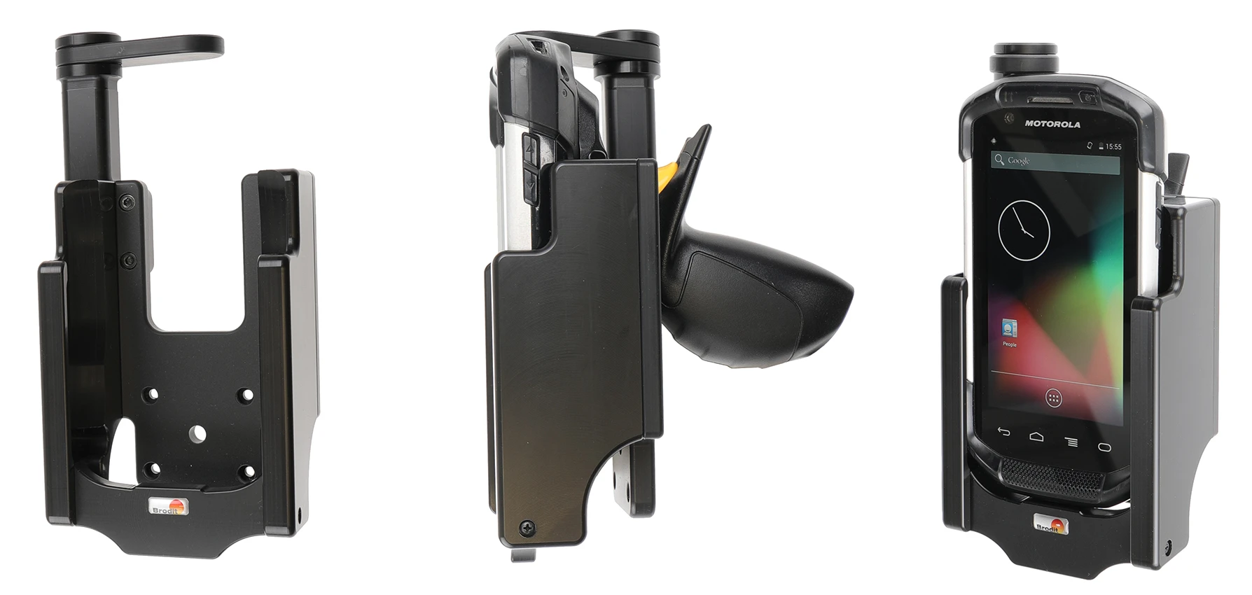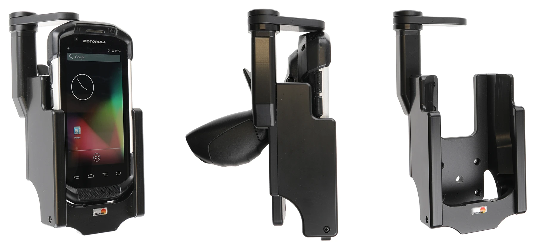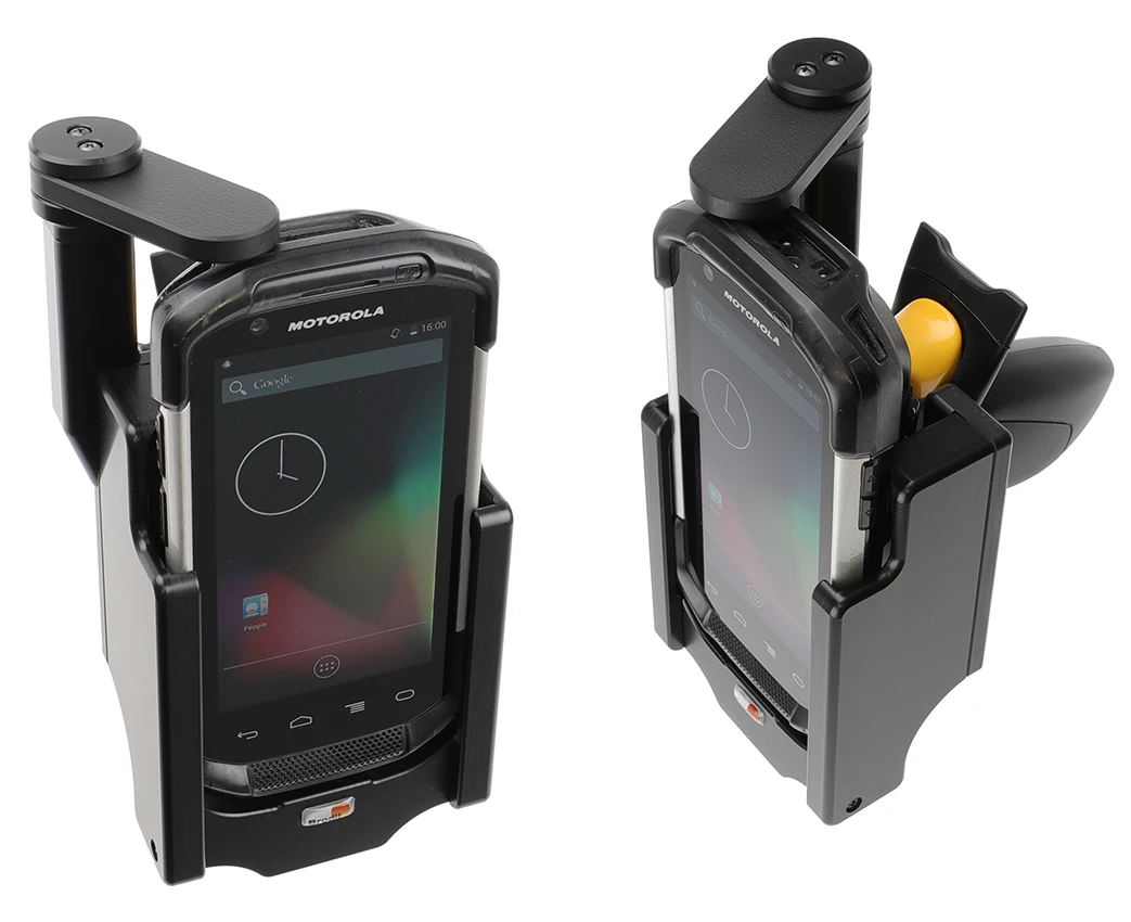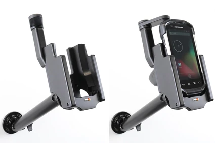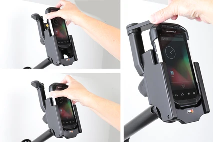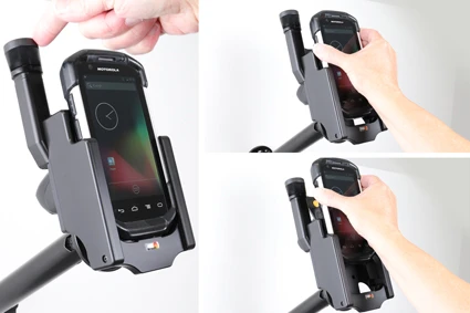 It is easy to place the PDA in the holder, and to take it with you when leaving the vehicle. You can attach e.g. a charging cable to the device while in the holder. Attach onto a Pedestal Mount.