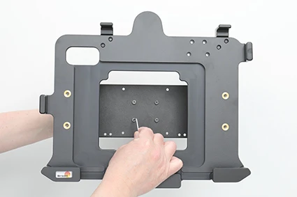 Attach the cradle onto any flat surface or Pedestal Mount in a forklift, truck, distribution vehicle, warehouse, table top etc. Backplate made of steel with 4 mm AMPS and 4 mm VESA 75 standard holes. Made of high grade ABS-, Acetal-plastic and metal. Color: Black. Made in Sweden.