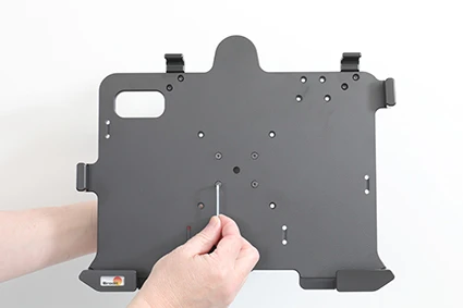 Attach the cradle onto any flat surface or Pedestal Mount in a forklift, truck, distribution vehicle, warehouse, table top etc. With 4 mm AMPS and 4 mm VESA 75 standard holes. Made of high grade ABS-, Acetal-plastic. Color: Black. Made in Sweden.