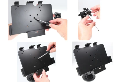 The holder is equipped with a tilt swivel so you can easily adjust the angle for better viewing, or switch between portrait and landscape mode. Tilts 15° and swivels 360°. Mounting plate 42x50 mm with predrilled AMPS-holes. Made in Sweden. Made of high grade ABS and Acetal plastic. Color: Black. Devices should not be installed onto a vehicle's dashboard if blocking the view or key controls. An installation of a device in a vehicle is always done on the customer's own responsibility.