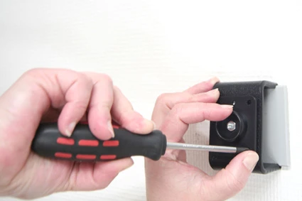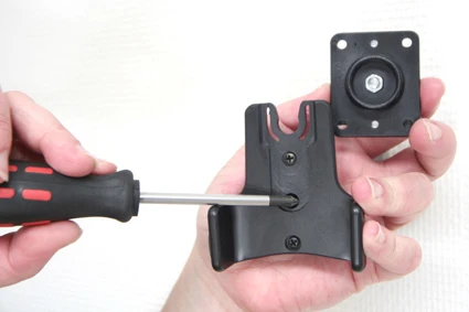 Loosen the screw in the center of the holder so you can remove the tilt swivel attaching plate on the back.