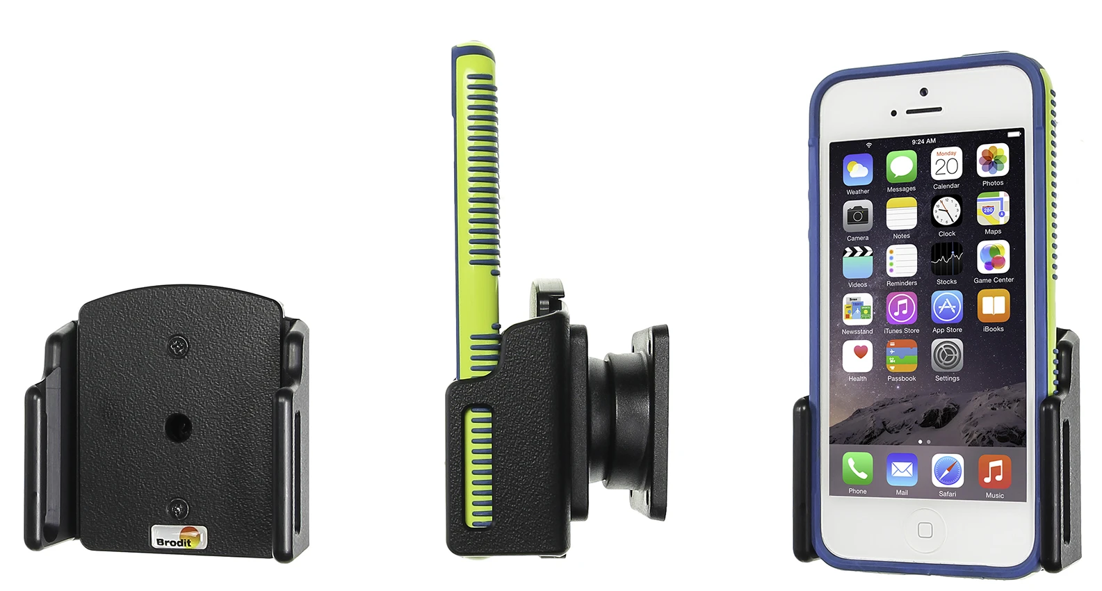Keep your iPhone in a passive holder on the road and you will always have it within easy sight and reach. Safe, comfortable and convenient! The holder has a neat and discreet design which blends well with the vehicle's interior. Your iPhone is held securely in place in an upright position for maximum cellular reception. You can connect an Apple Lightning cable and a headset to your iPhone while placed in the holder.