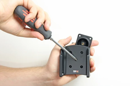 Place the holder over the attaching plate so the tilt swivel fits. Screw the holder onto the attaching plate.