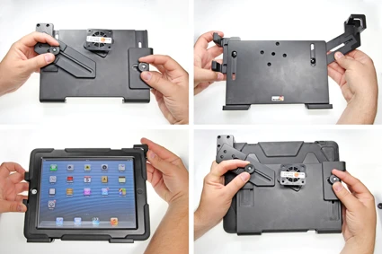An installation of a tablet onto a vehicle’s dashboard is always done on the customer’s own responsibility. Brodit recommends to use tablets on the car’s headrest, installed onto a Brodit headrest mount.