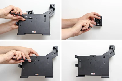 Tablets should not be installed onto a car’s dashboard if they block the view or block key controls. The ProClip is designed for installation of smaller devices (phones), not for large devices (tablets). If you want to place a tablet onto the car’s dashboard, each combination of tablet-car must be examined in detail by you in order to determine if such an installation is possible in the specific case. Consideration should be given to the position and how firmly the ProClip is in place, as well as the size of the tablet you wish to use. Brodit will not give any recommendations for such installations.