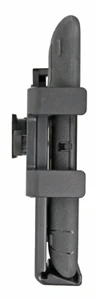 To place your device in the holder: Insert the top right corner of the device into the holder and press upward/rightward so the resilient arm flexes and you can place the device into the holder. To remove the device: Press the device upward/rightward until it comes loose and can be removed from the holder.