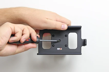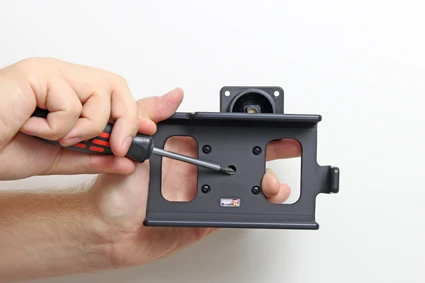 Place the holder over the attaching plate so the tilt swivel fits. Screw the holder onto the attaching plate.
