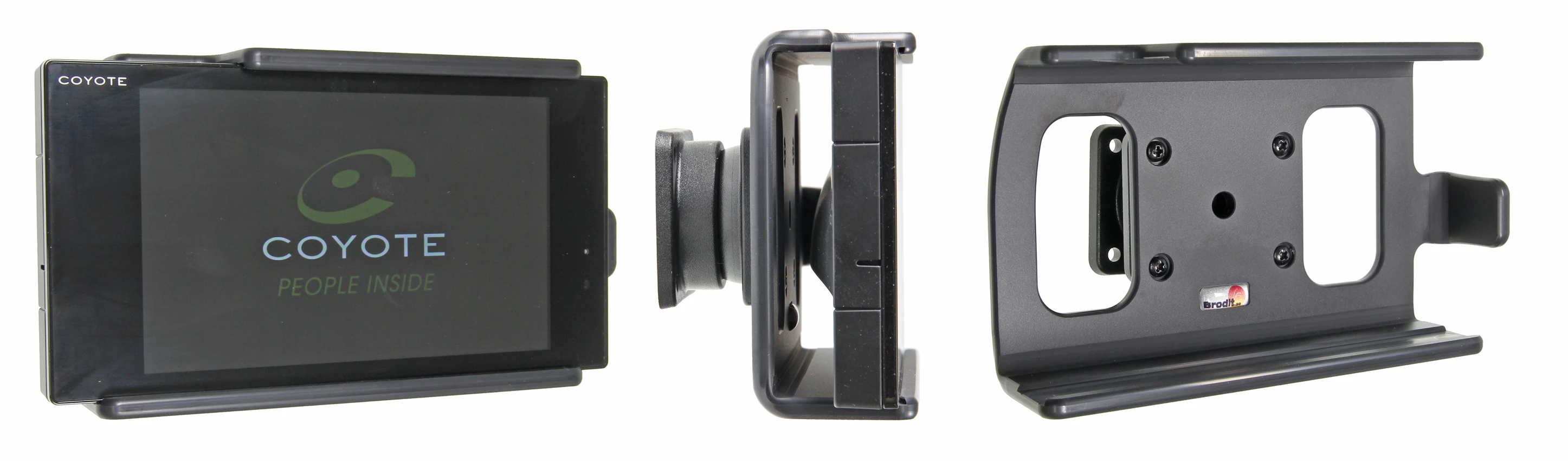 With your Coyote Nav in a passive holder attached onto the dashboard it is always within easy reach - safe and convenient. The holder is mounted onto a tilt swivel so it is adjustable for avoiding light reflection on the screen. It is easy to put the GPS in the holder, and to take it out of the holder. You can connect e.g. a charging cable to the GPS when it is in the holder.