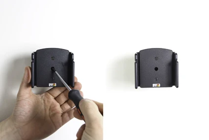 To adjust the holder for your device: Loosen the screws on the front side of the holder, so the sides of the holders can be adjusted. Place the device in the holder and press the sides together so the device is firmly in place. Tighten the screws on the front side of the holder.