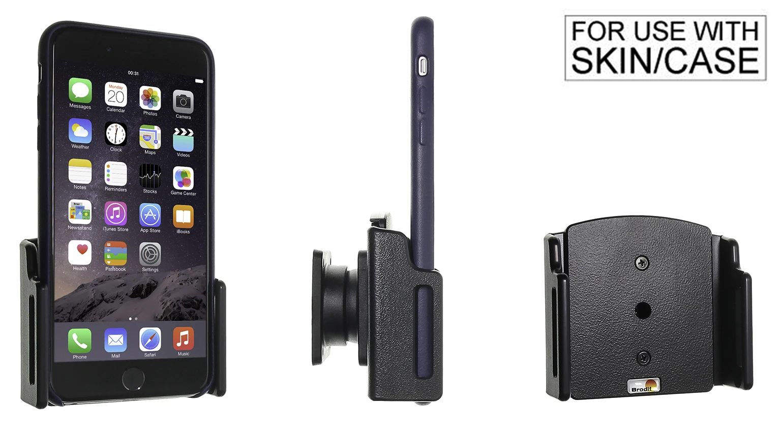 To use the holder, you first set the width to fit for your skin, then you can easily place your iPhone in the holder.