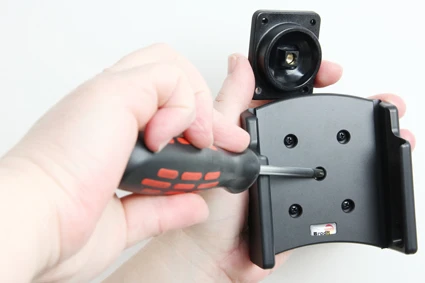Place the holder over the attaching plate so the tilt swivel fits. Screw the holder onto the attaching plate.