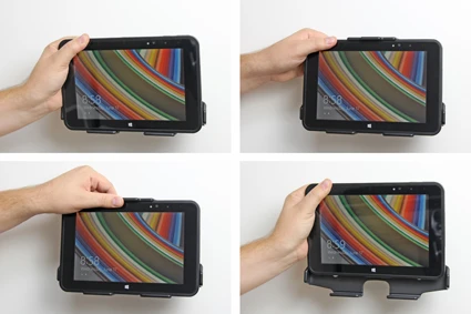 Tablets (Surfpads) should not be installed onto a car’s dashboard if they block the view or block key controls. ProClip (Brodit’s vehicle mounting bracket) is designed for installation of smaller devices like mobile phones and GPS devices, ProClip is not designed for large devices like tablets. In some vehicles the ProClip has an extra firm fit and can then be used also for installation of a tablet. If you want to place a tablet onto the car’s dashboard, each combination of tablet-car must be examined in detail by you in order to determine if such an installation is possible in the specific case. Consideration should be given to the position and how firmly the ProClip is in place, as well as the size of the tablet you wish to use. Brodit will not give any recommendations for such installations.