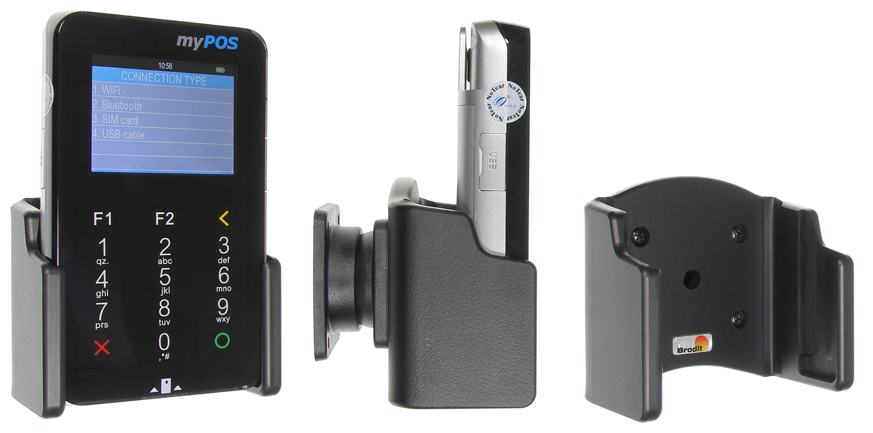 The holders for myPOS D200C are extra durable, designed to withstand rough working conditions in professional use. With your rugged PDA in a passive holder attached onto the dashboard it is always within easy reach -safe and convenient. The holder is mounted onto a tilt swivel so it is adjustable for avoiding light reflection on the screen. It is easy to put the PDA in the holder, and to take it out of the holder. You can connect e.g. a charging cable to the PDA when it is in the holder.
