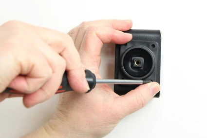 Place the holder over the attaching plate so the screw fits in the hole in the tilt swivel. Screw a few turns on the screw, just so the thread starts to pull. Pull the holder toward you and hold it slightly tensed, in the same time tighten the screw so the holder is pulled toward the tilt swivel. Tighten the screw firm at first, then loosen it a bit so the holder is firmly in place, but still can be adjusted.