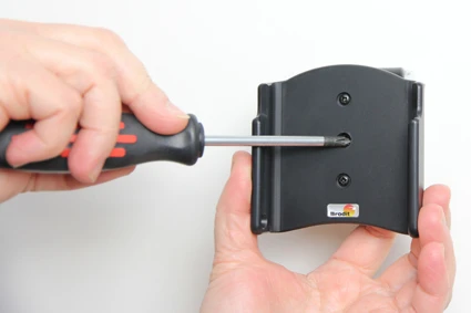 Place the holder over the attaching plate so the screw fits in the hole in the tilt swivel. Screw a few turns on the screw, just so the thread starts to pull. Pull the holder toward you and hold it slightly tensed, in the same time tighten the screw so the holder is pulled toward the tilt swivel. Tighten the screw firm at first, then loosen it a bit so the holder is firmly in place, but still can be adjusted.