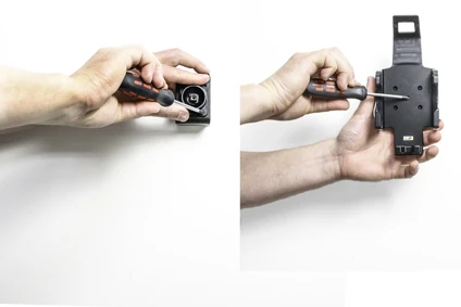 Loosen the screw in the center of the holder so you can remove the tilt swivel attaching plate on the back.