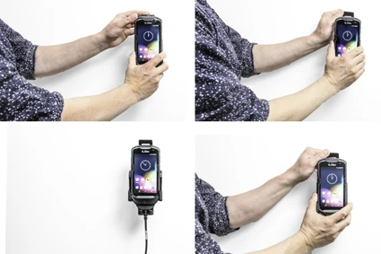 Keep your device in a holder and you always have it within easy sight and reach! The holder is mounted on a tilt swivel so you can easily adjust the angle of the device in order to avoid light reflection. 3-point holder for a more secure hold.