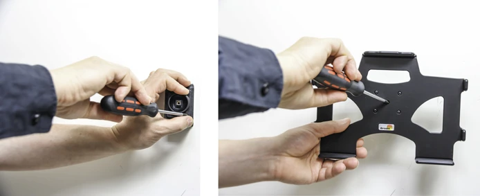 An installation of a tablet onto a vehicle’s dashboard is always done on the customer’s own responsibility. Brodit recommends to use tablets on the car’s headrest, installed onto a Brodit headrest mount.