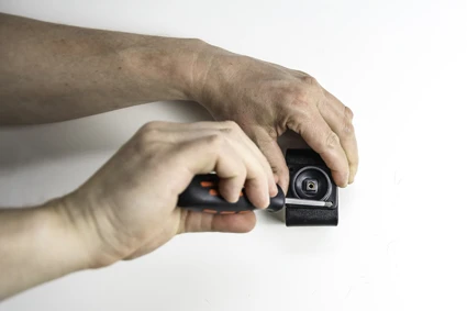 To place the device in the holder: Place the upper part of the device under the upper part of the holder. Press upward so the upper part of the holder slides upwards. Press the lower part of the device forward so the device is placed straight in the holder. Stop pressing upward so the upper part of the holder slides downward and rests on the device. Press downwards HARD on top of the holder, in the same time tighten the wingnut on the back of the holder FIRMLY. IMPORTANT: It is very important to press downward HARD on top of the holder and to tighten the wingnut FIRMLY so the device is properly held in place in the holder. To remove the device from the holder: Loosen the wingnut on back of the holder. Press the device upward so the the upper part of the holder slides upward. Lift the device downward and out of the holder.