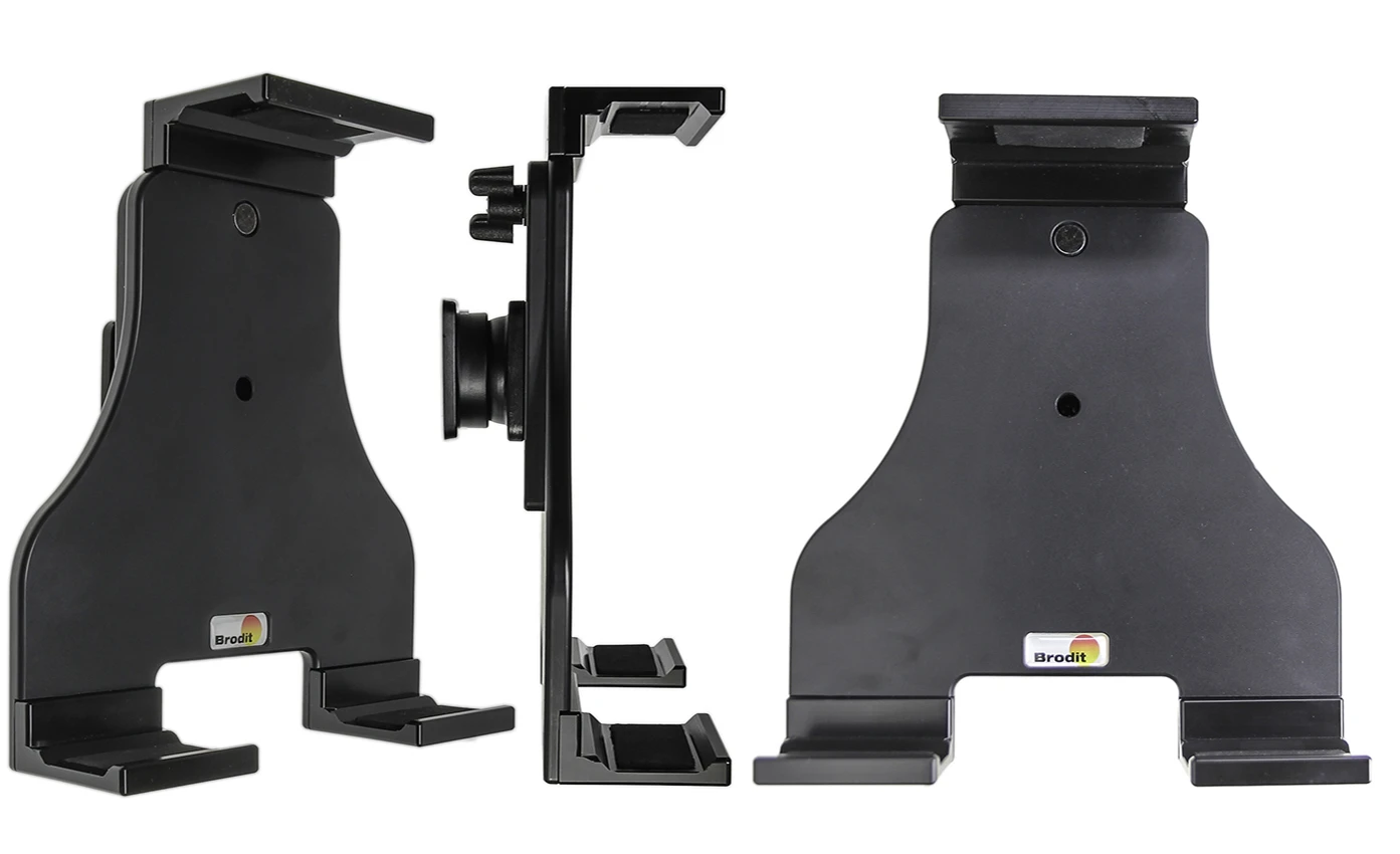 Adjustable passive holder with tilt swivel for devices with or without skin/case. This holder is crash tested and approved for use with device without skin/case on Brodit's headrest mount. Keep your device in a holder in your car and you will always have it within easy sight and reach. Safe, neat and convenient!