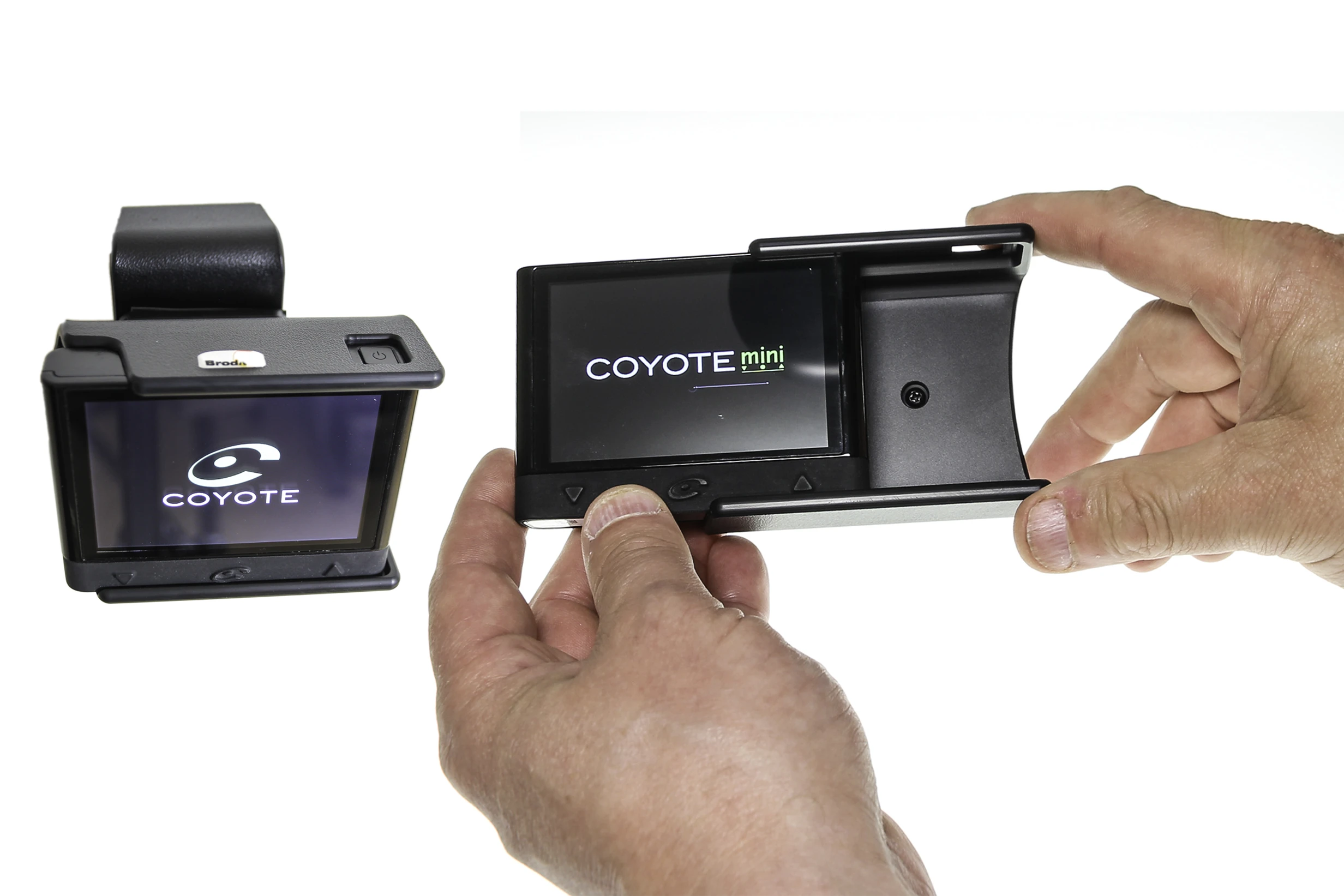 With your Coyote Mini in a passive holder attached onto the dashboard it is always within easy reach - safe and convenient. The holder is mounted onto a tilt swivel so it is adjustable for avoiding light reflection on the screen. It is easy to put the device in the holder, and to take it out of the holder. You can connect e.g. a charging cable to the unit when it is in the holder.
