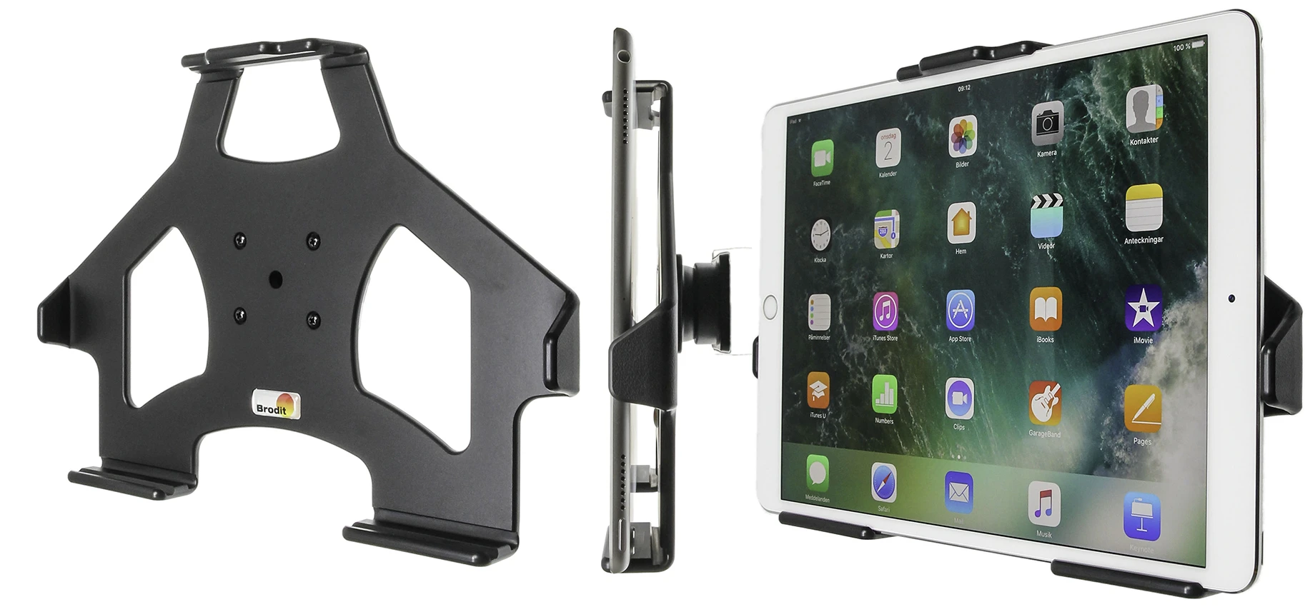 An installation of a tablet onto a vehicle’s dashboard is always done on the customer’s own responsibility. Brodit recommends to use tablets on the car’s headrest, installed onto a Brodit headrest mount.