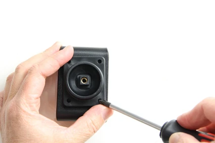 Loosen the screw in the center of the holder so you can remove the tilt swivel attaching plate on the back.
