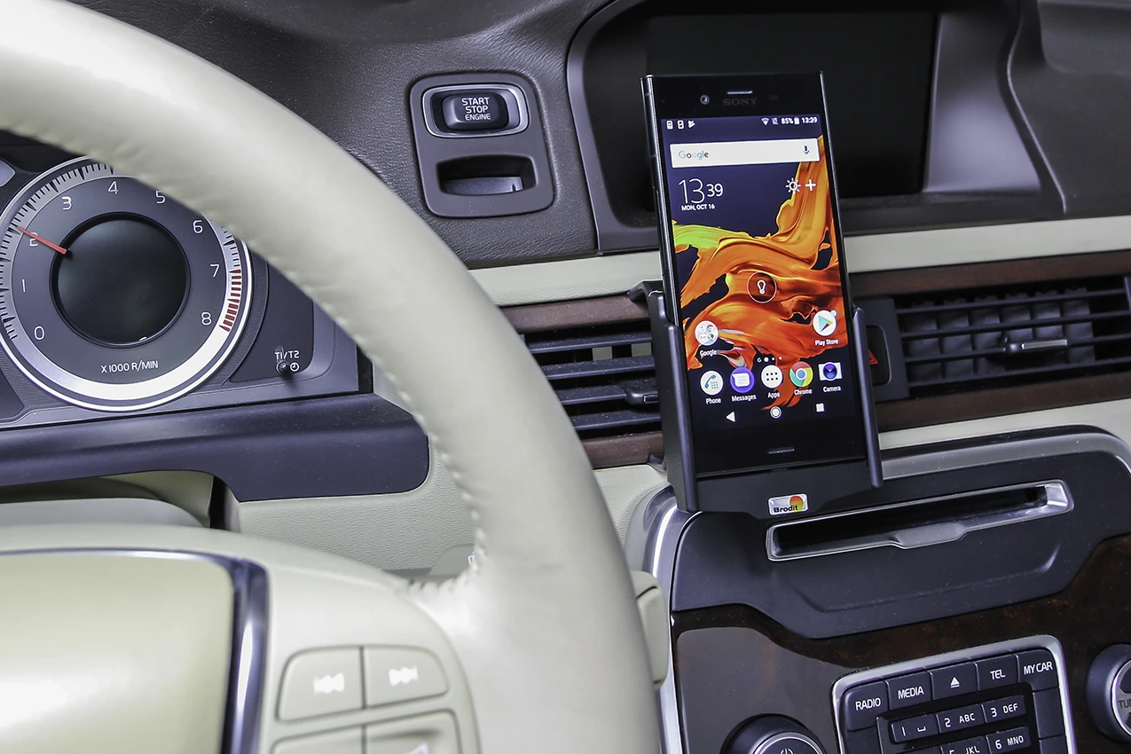 Keep your phone in a passive holder and you will always have it within easy sight and reach! Neat, discreet and convenient. Custom made with a perfect, firm fit. You have full access to the camera and all buttons and outlets when the device is in the holder. You can connect a charging cable or portable handsfree to the device when it is in the holder.