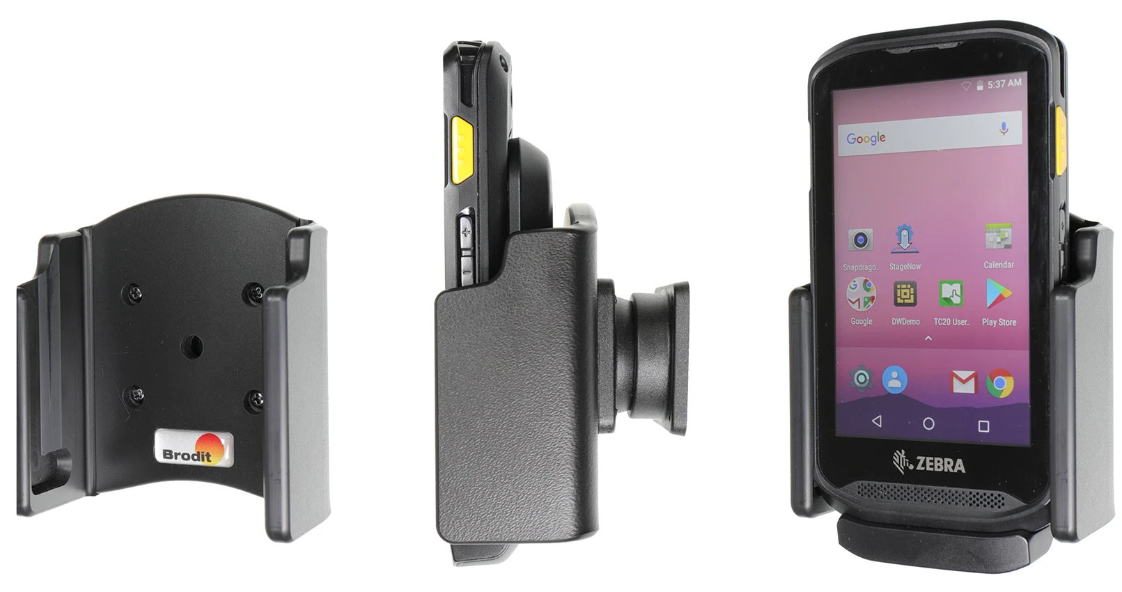 Keep your device in a Brodit holder, and you will always have it within easy sight and reach! Customized holder with a perfect, firm fit for device with Powerbank BTRY-TC2X-PRPK1-01.