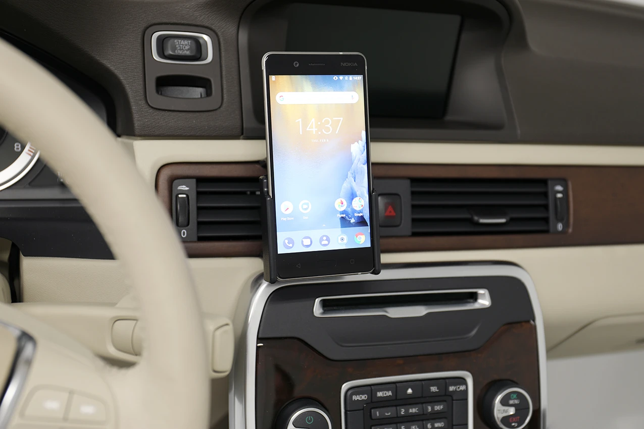 Keep your phone in a passive holder and you will always have it within easy sight and reach! Neat, discreet and convenient. Custom made with a perfect, firm fit. You have full access to the camera and all buttons and outlets when the device is in the holder. You can connect a charging cable or portable handsfree to the device when it is in the holder. Fits only devices without the included back cover on.