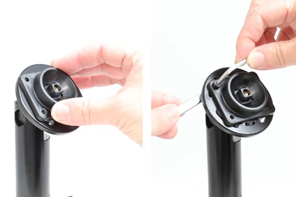 Loosen the screw in the center of the holder so you can remove the tilt swivel attaching plate on the back.