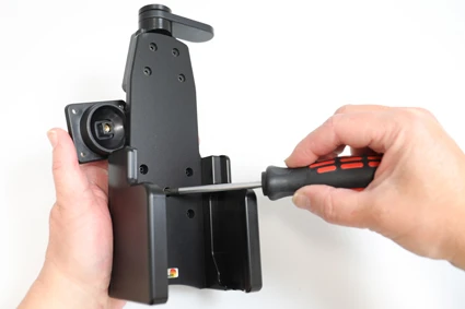 The holder is equipped with a tilt swivel so you can easily adjust the angle of the device. Tilts 17° and swivels 360°. Mounting plate 42x50 mm with AMPS-holes. Made of high grade black ABS/Acetal plastic. Made in Sweden. Attach onto a Pedestal Mount.