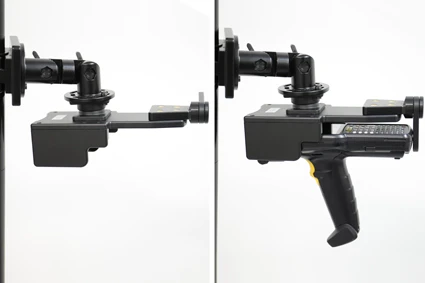 Custom designed holder with a perfect fit for all Zebra MC3300 versions with pistol grip. The device is held into place firmly with the display facing the holder, allowing for easy insert/removal when using the pistol grip. Robust design, very strong construction for every day professional use in rough environments. Keep your device in a passive holder and you will always have it within easy reach! Neat, discreet and convenient.