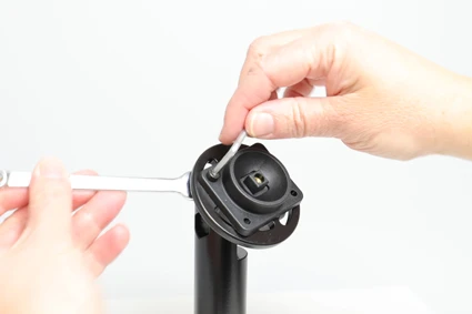 Place the holder over the attaching plate so the screw fits in the hole in the tilt swivel. Tighten the screw so the holder is firmly in place, but still can be adjusted.