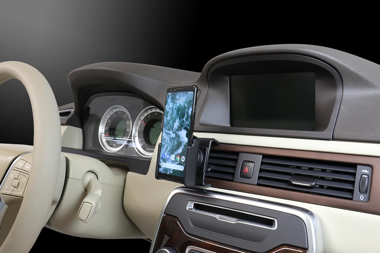 Keep your phone in a passive holder and you will always have it within easy sight and reach! Neat, discreet and convenient. Custom made with a perfect, firm fit. You have full access to the camera and all buttons and outlets when the device is in the holder. You can connect a charging cable or portable handsfree to the device when it is in the holder.