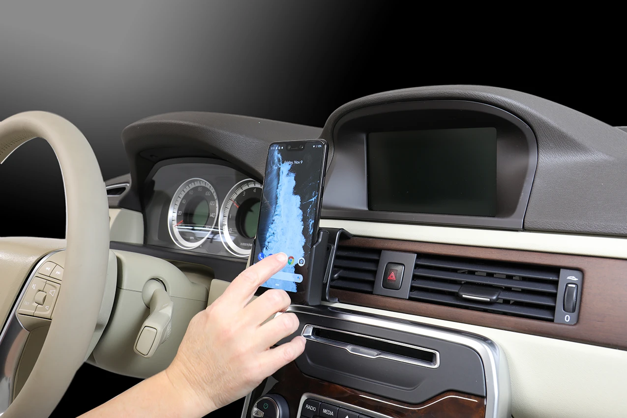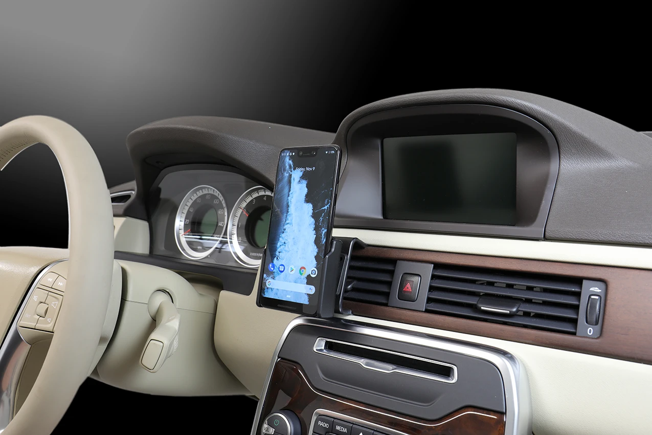 Keep your phone in a passive holder and you will always have it within easy sight and reach! Neat, discreet and convenient. Custom made with a perfect, firm fit. You have full access to the camera and all buttons and outlets when the device is in the holder. You can connect a charging cable or portable handsfree to the device when it is in the holder.