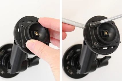 Loosen the screw in the center of the holder so you can remove the tilt swivel attaching plate on the back.