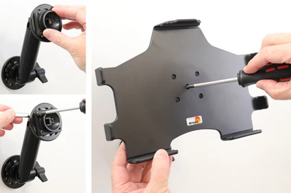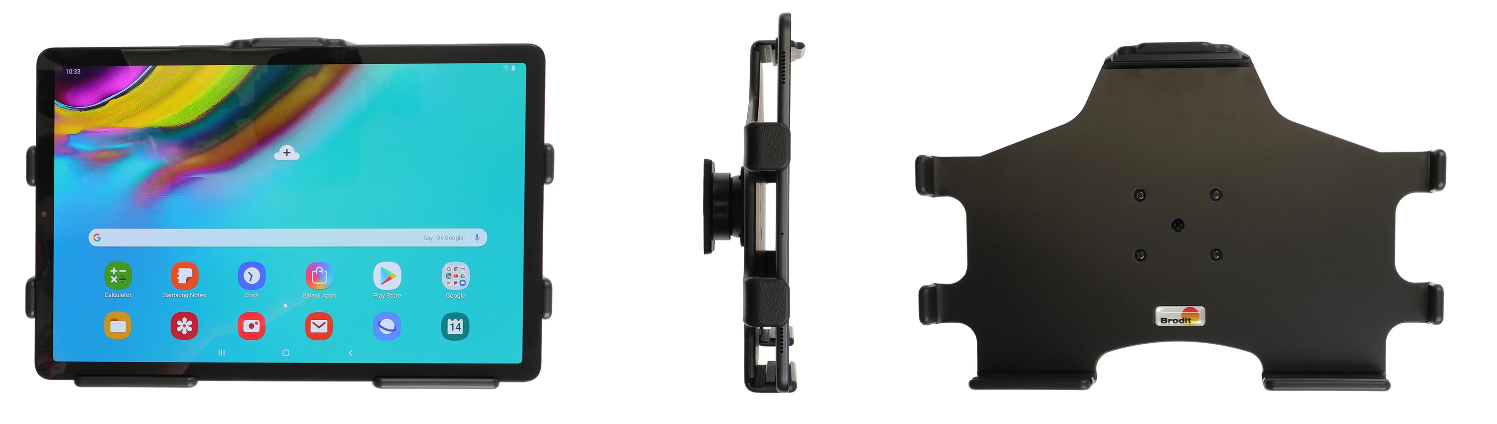 An installation of a tablet onto a vehicle’s dashboard is always done on the customer’s own responsibility. Brodit recommends to use tablets on the car’s headrest, installed onto a Brodit headrest mount.