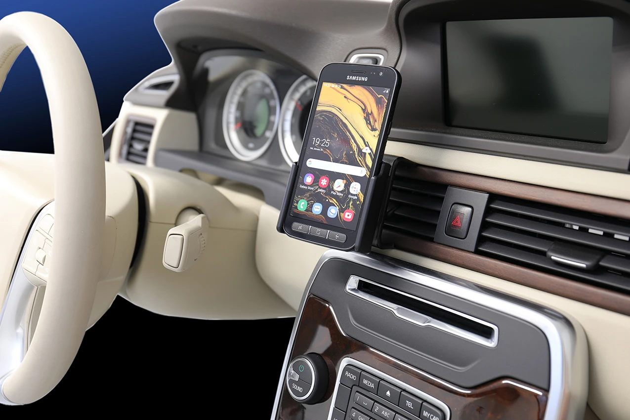 Keep your phone in a passive holder and you will always have it within easy sight and reach! Neat, discreet and convenient. Custom made with a perfect, firm fit. You have full access to the camera and all buttons and outlets when the device is in the holder. You can connect a charging cable or portable handsfree to the device when it is in the holder.