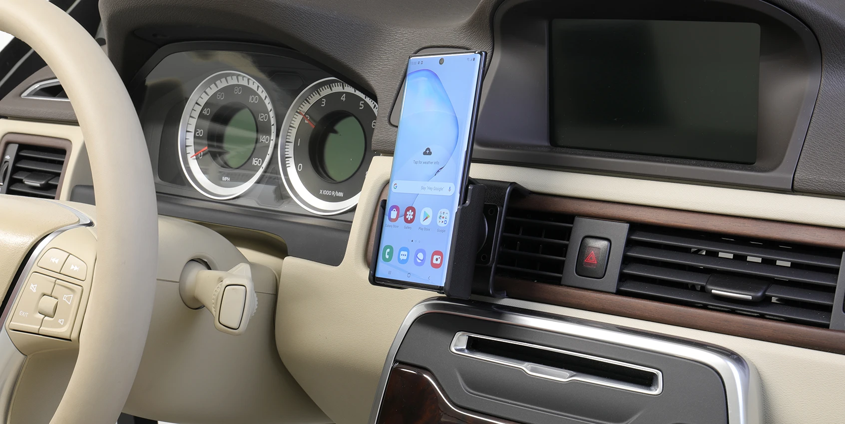 Keep your phone in a passive holder and you will always have it within easy sight and reach! Neat, discreet and convenient. Custom made with a perfect, firm fit. You have full access to the camera and all buttons and outlets when the device is in the holder. You can connect a charging cable or portable handsfree to the device when it is in the holder.