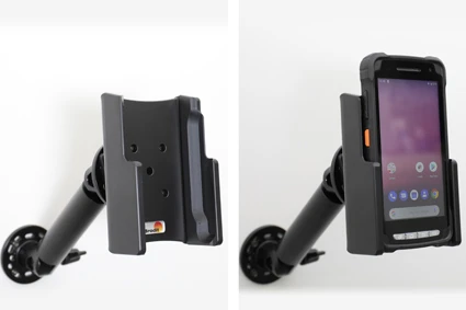 The holder is equipped with a tilt swivel so you can easily adjust the angle for better viewing, or switch between portrait and landscape mode. Tilts 17° and swivels 360°. Mounting plate 42x50 mm with 4 mm AMPS-holes. Made of high grade black ABS/Acetal plastic. Color: black. Made in Sweden. Attach onto a ProClip Mounting Platform or a Pedestal Mount.