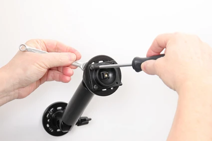 Place the holder over the attaching plate so the screw fits in the hole in the tilt swivel. Tighten the screw until the holder is firmly in place, but still can be adjusted.