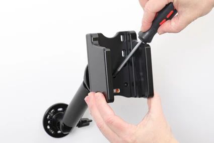 With your PDA in a passive holder attached onto the dashboard it is always within easy reach -safe and convenient. The holder is mounted onto a tilt swivel so it is adjustable for avoiding light reflection on the screen. It is easy to put the PDA in the holder, and to take it out of the holder. You can connect e.g. a charging cable to the PDA when it is in the holder. Attach onto a ProClip Mounting Platform or a Pedestal Mount.