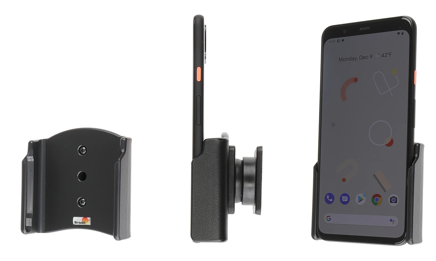 The holder is equipped with a tilt swivel so you can easily adjust the angle for better viewing, or switch between portrait and landscape mode. Tilts 17° and swivels 360°. Mounting plate 42x50 mm with 4 mm AMPS-holes. Made of high grade black ABS/Acetal plastic. Color: black. Made in Sweden. Attach onto a ProClip mounting platform.
